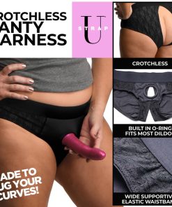 This great alternative to a strapon harness is comfy and compatible with all dildos! Play with a different dynamic with this Crotchless Panty Harness! This harness has a universal O-ring that can fit any strapon dildo. The wide, elastic waistband is comfortable and hugs you above the hips. Designed so that you can both give and receive pleasure during play,... Read more