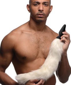Indulge in your primal fantasies with this large anal plug and white fox tail kit! The slim anal plug is made from premium grade silicone so you can play worry free knowing your toy is phthalate-free and body safe! The tapered tip makes it easy to insert and the plus yet firm body of the plug is comfortable and pleasurable to wear.