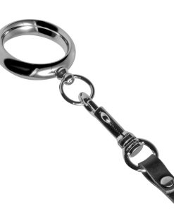 Lead them by the cock with this premium leather leash and cock ring set. The heavy steel ring has an O-ring front, letting you clip the high quality leather leash to it to gain control of their most sensitive parts. Now you lead them around and make them do your bidding, while maximizing and retaining blood flow for a harder, longer lasting erection. They will not be able to say no to this exquisite set.