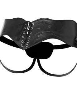 This stylish strap on harness has exquisite detailing in the back, designed to highlight your best assets as you pound your partner. The back of the harness laces up, and is adorned with curling designs stamped right into the leather. A soft, felt-like lining keeps the wearer comfortable. The nylon leg straps are fully adjustable, curving behind the thighs and... Read more