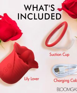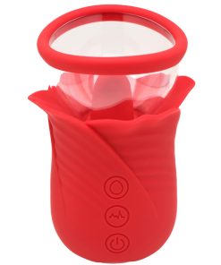 This lovely flower is here to buzz your garden and drink your nectar! It combines suction with vibration for a perfectly paired sensory delight! The flower tongue will tickle your pearl with 3 speeds and 7 patterns of vibration. Place the removable suction cup onto the top of the flower to enjoy 6 different suction modes that tease and gently pull at you in tantalizing ways! Made out of silky smooth, premium silicone the flower is perfectly suited to your needs. You can even take it in the shower! It is rated IPX6 waterproof so it can handle powerful jet streams, but do not submerge it underwater. Use only with water-based lubricants for best results. To clean, rinse in warm water and mild soap then spray with a toy cleaner. Store in a cool, dark place. Recharge using the USB cable provided.