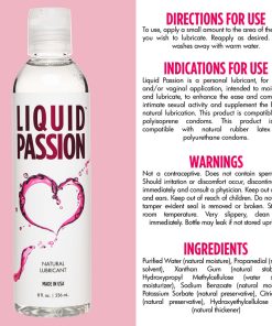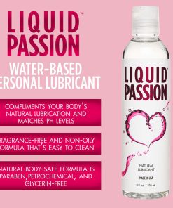 It plays well with toys and condoms, too! The water-based formula is designed to be used with any toy material and most condoms so you can always play it safe. So whether you’re playing with yourself or sharing the pleasure with someone else, Liquid Passion is the perfect partner to bring along for the ride.