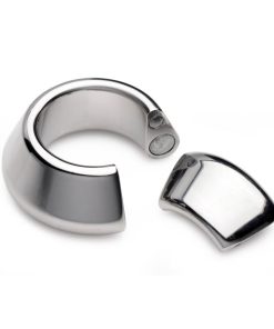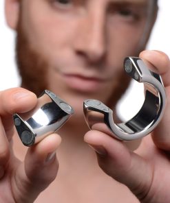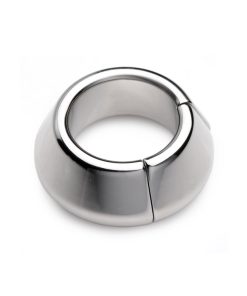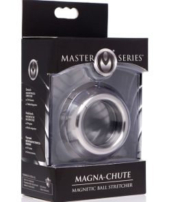 Made of heavy-duty stainless steel, this parachute-style ball stretcher closes with a powerful magnet around your scrotum. Experience 8.6 ounces pulling down on your sensitive balls while you masturbate, have sex, or get teased and tormented by your partner. Gravity will take its toll, creating the tugging sensation you crave and amplifying any sexual experience. The chrome-plated stainless steel is nickel-free, non-porous, and easily sanitized with mild soap or toy cleaner after use.