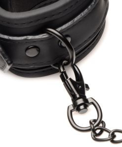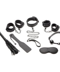 Take your relationship to the next level with this 10 Piece Bondage Set! The set includes wrist cuffs, ankle cuffs and a collar. Enjoy attaching the nickel-free, metal chains to each of the cuffs to bind them, and then attach the metal chain leash to their collar to lead them around! The straps on all of the cuffs and the collar are made of vegan-friendly, comfortable PU leather and are easy to adjust using the buckle closure. Add some more fun into your evening with more goodies included! This kit also introduces you to sensation play and light impact play! Enjoy trying out the flogger or paddle on their backside or lightly against their chest while they are blindfolded and gagged. Use the blindfold to enhance their sensitivity and awareness to touch. Use mouth gag has holes in it to improve breathability and can also enhance your sexual experience!