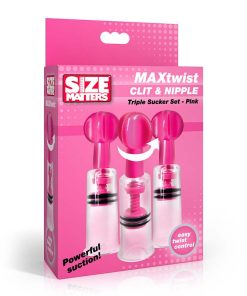 Discover the ultimate in sensory enhancement with the MAXtwist Clit and Nipple Triple Sucker Set. Designed to twist and suck, these innovative suckers heighten your pleasure with ease. Their robust build, combining durable plastic and reliable rubber seals, ensures long-lasting enjoyment. Experience the thrill of using two on your nipples and one on your clit simultaneously. Suitable for all genders, they offer versatile fun for any sensitive spot.