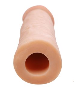 Slide into the Mega Penis Enlarger Sleeve and your size will be massively increased! This thick, stretchy, ultra realistic sleeve fits snugly around your shaft for extra staying power and an instant size boost, no creams, pills, or devices needed. The end is a solid extension that gives you another 2 inches in length! The Mega Enlarger Sleeve features thick walls of ultra realistic material that will add nearly another inch to your girth as well! This lifelike rubber is firm, yet squeezable, just like the real thing! For a custom fit, the bottom can be cut to size with a pair of scissors. Remains securely in place, with a hollow shaft that provides a snug fit. Guaranteed to add thickness and length and as easy to use as a condom, use the Mega Enlarger Sleeve today and enjoy your new longer, thicker, bigger rod!