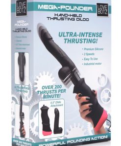 Experience ultra-powerful pounding action with this hand-held thrusting dildo. Discover the 2 intense speeds from the industrial motor, for up to 200 thrusts per minute. Pummel yourself or your partner with the defined ridges and veins of the realistic dong! You have never been banged like this before… The 6.75 inch dildo attachment is made of non-porous and phthalate-free silicone. While it is not compatible with silicone lubricants, it is easily sanitized with mild soap or toy cleaner. An additional dildo attachment is included that is flexible to be bent into the perfect angle to target your favorite parts! Further care instructions are included.
