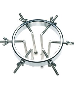 This stainless steel anal explorer is perfect for those into medical play who want to expand and stretch open their backdoor! Made out of strong, durable, non-porous, nickel-free steel, it’s compatible with all lubricant types and is nonporous. The Anal Explorer consists of one large ring with a diameter of 4.1 inches and 6 dilators that have smooth rods with small, round, balls on the ends of them. Insert it almost 3 inches deep and spread their hole wide open! The ring is wide enough for you to fit your fist through, as well! Each dilator rod can be adjusted individually using the wingnuts to tighten or loosen the position on the screw. Only the smooth steel will be pressing against the sensitive tissue of the anus while the spiraling screws are outside against the buttocks. To clean after use, rinse with warm water and mild soap or boil it in water. Then spray it with isopropyl alcohol and wipe clean.