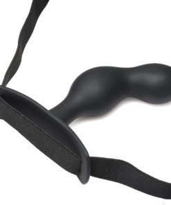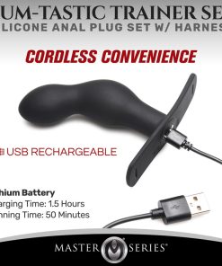 Give yourself hours of prostate stimulation as you train your booty to hold a plug in place with the assistance of this harness! The plush, premium silicone plug is perfect for beginners who want to explore long, anal sessions and some light bondage and want to also build endurance for prostate milking. The curved shape of this plug is specifically designed to push against the prostate. With a slim, tapered tip the plug can glide in with a little water-based lube easily. The base widens out and then decreases size for the small neck that keeps the plug from going in too far. The thin base makes wearing it between your cheeks comfortable for hours at a time. Use the nylon harness to hold the plug in place while you go about your daily activities and tasks. As a bonus, you can also explore pleasure for longer durations, as well! Use the battery operated remote control to turn on the vibrator and enjoy 4 speeds and 7 patterns of buzzing vibration in your derriere! The harness is fully adjustable; simply use the plastic buckles to tighten or loosen per your own comfort. Recharge the vibrating plug using the USB cable provided. Replace remote control battery as needed. After use, wash the plug with warm water and mild soap, then rinse and spray with a toy cleaner before wiping dry and storing in a cool, dark place separate from other silicone toys. To clean the harness, soak in a solution of warm water and mild soap before rinsing and letting air-dry.