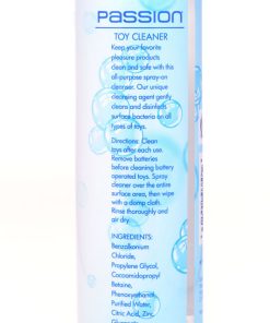 Keep all your toys at peak performance with this Passion Toy Cleaner! Made with quality ingredients, it has a water base that makes it compatible with all toy types and citric acid that cuts through lube and fluids. The Benzalkonium Chloride is a body safe, high quality disinfectant and antiseptic so you can clean with confidence. Contained in a travel friendly size, the 8 ounce bottle can be packed in a duffel bag or suitcase as easily as it can be stashed in a bedside table drawer.