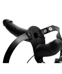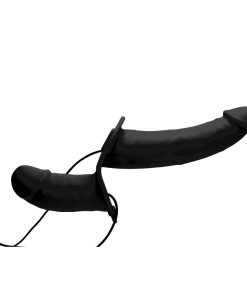 Power Pegger Black Silicone Vibrating Double Dildo with Harness