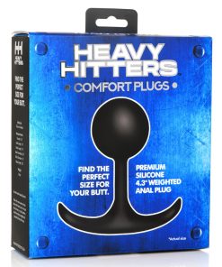 Learn what your ideal size is with these Heavy Hitter Comfort Plugs! The round ball serves as a large bulb for your backdoor to learn to pop inside. Test it out and see what your perfect size is! As you learn to take the big head inside of you, you can also learn to hold it there with the resistance from the solid, metal core! Enjoy the weighted center of the plug as it adds extra pressure inside you as you shift into different positions! Let gravity add to your pleasure as the plug pulls downward and train your sphincter muscles to hold it in place without letting it slip out! The plug is covered in silky soft, premium silicone; enjoy the phthalate-free, body-safe and plush material that is most compatible with water-based lubricants. The slim neck makes wearing it safe and the slim base makes room for your buttcheeks so you can easily and comfortably wear it for extended periods of time. To clean it, push it out and wash it with warm water and mild soap, then spray with a toy cleaner. Store out of direct sunlight and do not let it come into direct contact with other silicone toys or non-anal toys.