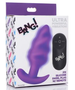 Enjoy the delicious swirling pattern of this Silicone Swirl butt plug! Plush and bumpy to provide a satisfying fill and an addictive mass for your ass to squeeze – perfect for use solo but can also be use with a lover to spice up your one on one time. Made with premium materials and equipped with a powerful motor for intense vibrations when needed!