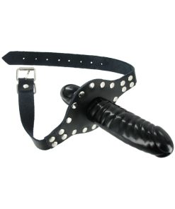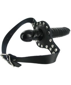 The Ride Me Mouth Gag keeps you stuffed and your partner silent! There is plenty of penetration to go around with a glossy black dildo on the outside, and a cock-shaped mouth gag on the inside. This double dose of dick is supported by a heavy-duty adjustable leather strap that buckles behind the head, and a studded mouth-guard. Fill up... Read more