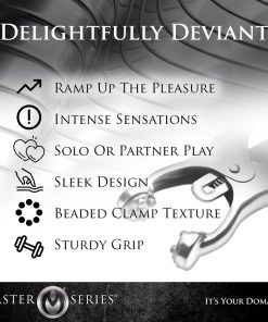 A comely device of restriction and paradise. The Ringed Monarch is an effective training tool in the art of endurance and sensation play. These devious chrome clover-style clamps are ideal for solo play or with the one you want to dominate. When the O-ring is pulled, the clamps pressure becomes more intense. Use your imagination, this devious set includes a... Read more