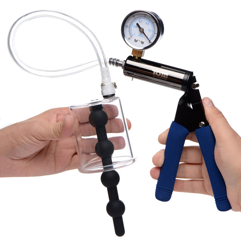 Make your A-hole swell as powerful suction increases circulation. Anal engorgement combines with penetration in this unique pumping accessory. Just stuff your booty hole with the flexible silicone beads, attach your compatible hose and pump, and begin squeezing to build pressure in the cylinder. Your anus will be sucked in, puckering out like a blooming rosebud! The 4 smooth bulbs of the anal beads will add additional stimulation as you increase the size and sensitivity of your hole, but they can also be removed from the cylinder. Both materials are non-porous, durable, and sanitize thoroughly with mild soap or toy cleaner. Avoid use with silicone lubricants.