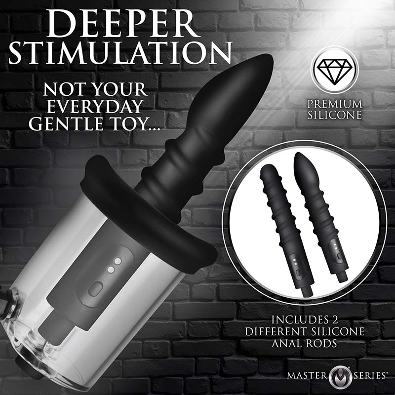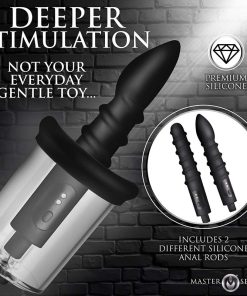 Introducing the ultimate device for intense anal stimulation. Experience the perfect combination of suction, thrusting, and vibration with 6 automatic suction modes and 3 speeds plus 3 patterns of vibration. You get to choose between two premium silicone rods, each featuring a spiraled ridge along the shaft. One rod has a rounded tip while the other has a pointed, bulb tip. Designed for unisex use, this toy is especially great for prostate massage. The rosebud suction device ensures it maintains its seal and suction even with the tubing removed. Enjoy easy control with an ergonomic controller that remembers your favorite setting. Fully waterproof (rated IPX8) and USB rechargeable for your convenience.