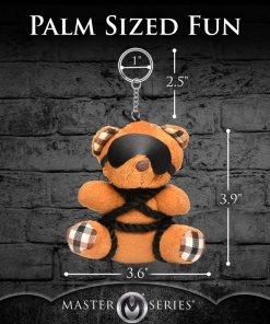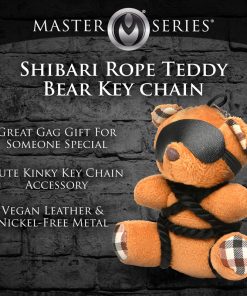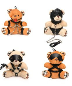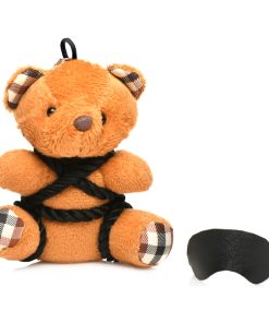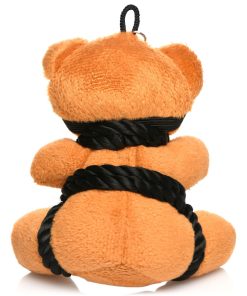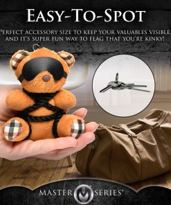 This little bondage bear just loves shi-bear-i! All tied up with silky rope and blindfolded, it’s the perfect companion for your office desk, backpack, bag, purse or keychain! Give it as a gift to your friends or keep it for yourself. It’s the cutest way to flag your kinky side! Fits in the palm of your hand. This kinky bondage bear is sure to put a smile on your face! Made out of polyester, PU faux leather, plastic and nickel-free metal.