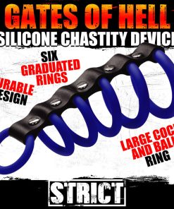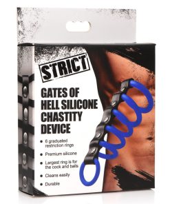 Want to explore the Gates of Hell Chastity devices but don’t want the severe restriction of steel? Try the sexy and durable silicone version! Made of premium, stretchy silicone, this cage has six constriction rings that run along the shaft and hug the shaft, corona and include a large ring at the base that goes around the shaft and below the balls! Explore enhanced sensation with restricted backflow of circulation and enjoy how your penis swells as you wear it! Designed to be easy to clean, simply wash the device with warm water and mild soap and then rinse and spray with a toy cleaner before wiping dry. Use only with water-based lubricants.