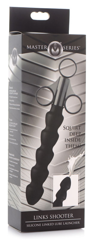 Equipped with 5 links for added pleasure, this lubericant launcher delivers a precise application so that your sensual experience does not have to be messy! The plunger is designed for one-handed ease of use. With the convenient finger loops you can fill the applicator with whatever liquid you want and inject with one simple thrust. The XL size holds over twice the amount of lube of most launchers, so you can get the job done with less steps! Made of premium silicone, this lubricant applicator is compatible with water-based and oil-based lubricants only. This non-porous and phthalate-free material cleans easily with mild soap or toy cleaner.