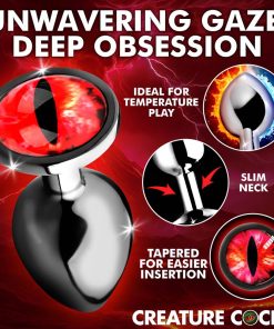 Step into another world with the Sinister Eye Metal Butt Plug! This fantasy-themed metal plug showcases a mesmerizing glass eye that peers out for a thrilling visual. Made from nickel-free metal, it suits sensitive skin and is lubricant-friendly. With a safety-first design that includes a small neck, flanged base, and tapered tip, it ensures comfort and ease of use. Spice things up by heating or cooling the plug with water to add an exciting temperature sensation to your intimate moments!