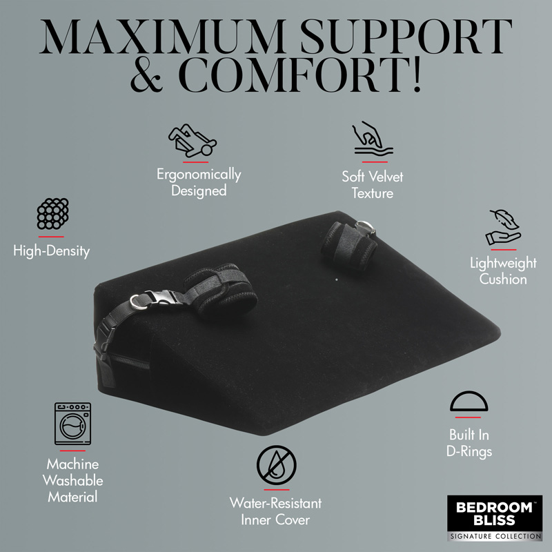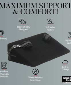 This velvet, black wedge goes great with any dark or neutral color decor, can be placed on your bed behind other pillows and used as support when you’re sitting up, and is one of the simple yet essential pieces of your sexy bedroom collection! Use the pillow under your hips to tilt your pelvis and get greater access to hitting your G-spot or P-spot. Use it under your head for comfort and to lift the neck. Pad your knees as you pound your partner in Doggy style pose! Get on your side and use it between your shins or thighs to easily part your legs as your partner slips in behind you! At any time you can add cuffs or kinky bondage accessories to make it more interesting! Get fun and creative as you enjoy upleveling your love game!