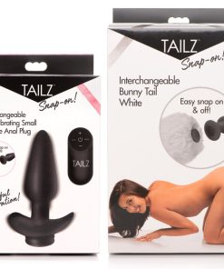 Perfect for animal play enthusiasts, SnapOn Tailz now offers a line of bunny tails that will make your bottom wiggle in pleasure! The slim anal plug is made from premium grade silicone so you can play worry free knowing your toy is phthalate-free and body safe! The tapered tip makes it easy to insert and the plush yet firm body of the plug is comfortable and pleasurable to wear. These interchangeable tails feature a nifty silicone cap at their base, allowing you to easily detach and switch with other Tailz Snap-on attachments. Designed for use with Tailz Snap-On Butt Plugs – collect a variety of styles and colors that suit your fantasy!
