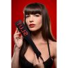 Measurements: Strap circling both penis and scrotum adjusts from 5.75 to 7.75 inches in circumference. Opening for penis adjusts from 4 inches to 9 inches in circumference. Ball separator measures 3.25 inches.