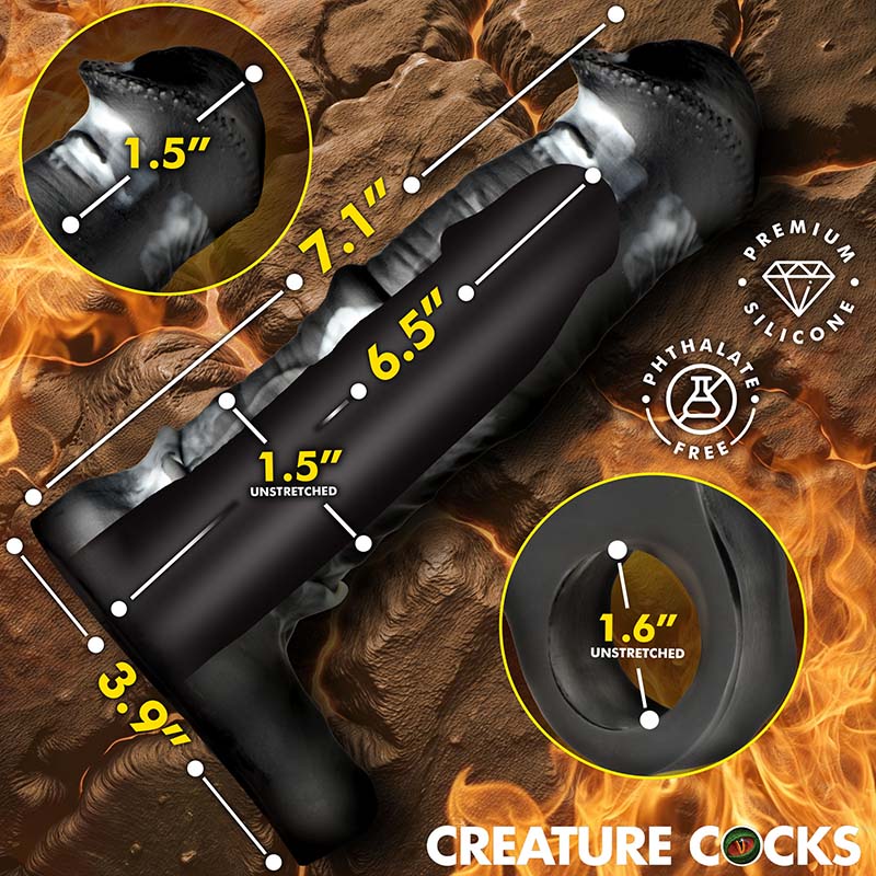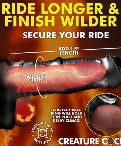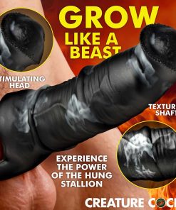 • Take your intimate play to a new level with the Stallion Silicone Penis Extension! Transform into a wild equine stud with this incredible sheath that promises to leave your partner in awe. With a substantial increase in length and girth, this extension provides the perfect boost for heightened pleasure. Featuring a wide, flared equine head that ensures deep, ecstatic moans with every thrust, the realistic texture of the veiny, black and gray shaft delivers a sensational experience. The stretchy ball ring keeps everything in place and extends your performance. Made from body-safe, premium silicone, it’s a must-have addition for adventurous couples. Remember, use only water-based lubricants for optimal performance.