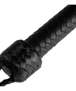 This exquisite leather impact toy is soft, supple, and has the feel of a whip that has already been broken in. The fine plaiting over a solid core and bullwhip handle make up the attractive design, for a timeless look and excellent feel. The 16 inch long braided cracker is removable, so that you may braid your own in after a particularly intense scene.
