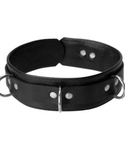 This Strict Leather Collar is built for comfort and durability. It consists of a two inch wide strap of soft leather folded over for comfort and a reinforcing heavy duty one inch strap. For extra security it incorporates locking buckles. Measurements: Adjustable from 13 to 19 inches in circumference, 2 inches in width Material: Leather, metal Color: Black Note: Locks... Read more