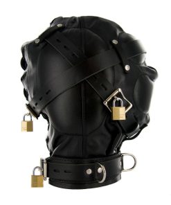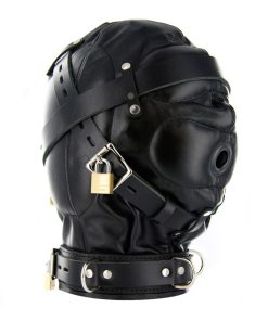 When the 3 locking leather straps are pulled tight against the padded eyes, mouth and ear areas you will feel pressure of the soft leather around your head. With your senses leaving quickly you become very submissive to your master’s demands and struggle to hear their every word. Comes in one size with laces for adjusting to fit. It features padded ear pockets, leather reinforcements for the eyes and mouth, a 0.75 inch mouth hole, and corset style back.