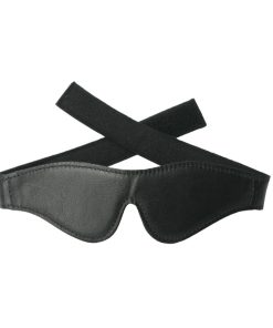 This blindfold is padded and lined with soft fabric. Its velcro fittings allow for a perfectly tight fit every time for an extremely effective black out. It looks good, feels good, and works beautifully. This is the perfect blindfold. Measurements: 24 inches around at widest point, 2 inches in width Material: Leather, Velcro Color: Black