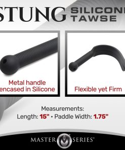 Punish your lover with a Silicone Tawse or split strap that gives them a stinging bite with each blow to their backside! Made out of premium silicone, it is a bit heavier than a lather or faux leather strap and much easier to clean! With this split end strap, you can deliver stingy blows that may leave a mark unless you’re careful! The handle itself can also be used as an implement for impact play, as well! The handle has a reinforced metal rod in the center so it’s durable and strong; beat them with the handle for a bit more thuddy impact! The handle also has subtle rings along it that add a little more grip and texture. They may enjoy the round ball end or the entire length of the shaft-like handle. Made of phthalate-free, plush, silky smooth silicone, it can be exposed to all kinds of bodily fluids and still be cleaned easily. Do not use silicone lube and stick with water-based lubricants only for best results. After play, wash with warm water and mild soap, then spray with a toy cleaner and wipe dry.