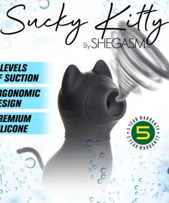 Make your pussy meow in pleasure with this Sucky Kitty Clitoral Stimulator! The powerful air-stim technology offers 7 levels of suction that tease and gently tug at your clitoris. Silky soft, premium silicone caresses your clit as the toy purrs against you and is made of phthalate-free and body-safe materials for worry-free fun! Unlike most cats, this kitty loves water. Rated as IPX7 waterproof, you can take it in the pool, jacuzzi, shower, or bathtub and have it submerged for up to 30 minutes! Relax and get wet with a waterproof kitty! After playtime is over, wash the toy in soap and water, then spray with a toy cleaner and wipe dry before storing. Recharge between uses with the USB cable provided.
