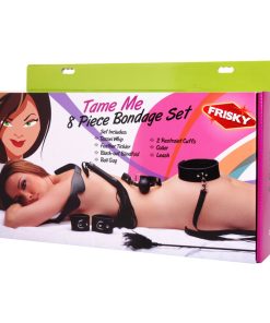 Everything you need for a night of steamy bondage is right here. This sexy collection includes a tassel flogger than can tickle or sting. A feather crop to tease a please. A lights out blindfold to keep you in suspense. A breathable ball gag to keep you silent. Of course a bondage set would not be complete without some sexy cuffs and a leash and collar, both with Velcro closures and easily adjustable. This set is lightweight and travel friendly, perfect for spicing things up, dipping your toes into exciting bondage play for the first time, or taking your pleasures on the road.