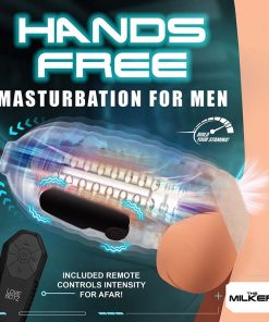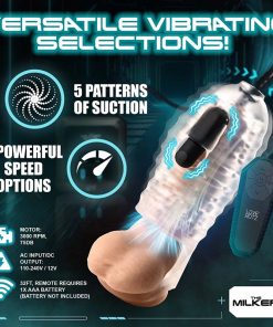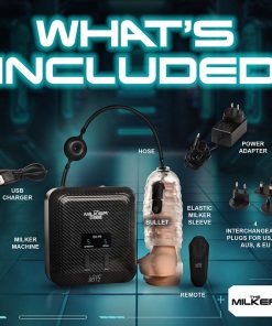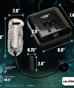 Want to dive into hours of pleasure and increase your sexual stamina? This Milkera Stamina is for you! You deserve hands-free pleasure that builds in ecstasy, and keeps you right on the edge while training you for long nights of passion! With the intense Milker Stamina device, you can enhance your pleasure with our advanced automatic milker, engineered for the ultimate indulgence. This sophisticated device includes a TPE sleeve with a securing ring that wraps around the balls and acts as a C-ring, plus a powerful rechargeable bullet that vibrates in 3 speeds and 7 patterns and slips into a pocket on the side of the sleeve. Choose from 5 speeds and 5 suction patterns for a mindblowing experience with settings that are easily adjusted using the large blue buttons on the device or via the battery-operated, remote. See what setting you’re exploring and easily read the bright, LED display. The 46-inch hose, fitted with a circular valve, prevents fluid ingress into the machine. Ideal for globetrotters, it comes with a power adapter and interchangeable plugs for US, UK, EU, and AUS compatibility.