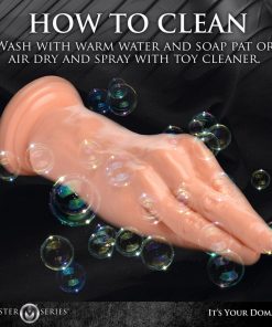 Five fingers of fun! The Stuffer presents you with the next penetrative challenge, allowing you to fist yourself, vaginally or anally. This life-size replica of a human hand features realistic details that will stretch you open and massage your hole. For your intro to fisting, this unique dildo is tapered at the tip with fingers that are grouped together for easy insertion. The flared base allows you to impale yourself entirely and ensures easy retrieval. The powerful suction cup can be mounted so that you can ride The Stuffer… hands-free! Made of a phthalate-free material, it is body-safe and compatible with silicone and water-based lubricants. Clean with a mild soap or toy cleaner after use.