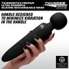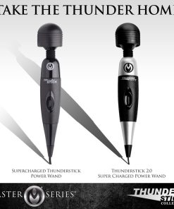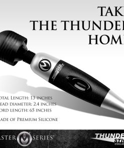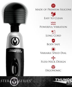 Same incredible power as the original, now with a silicone head and a sleek, modern makeover! The Thunderstick is the perfect vibrating massage wand, providing you with a smooth, variable speed dial that allows you to play with intensities that range from a delicate, low hum to a knee-shaking thrum. The flexible neck allows you to find the right angle without straining your wrist. Whether you are playing solo, with a partner, or even enjoying forced orgasm or orgasm denial play, the textured body ensures a secure grip. Just plug it in and experience the most powerful vibration in its class! This new version of the Thunderstick is easier than ever to clean, made with non-porous and phthalate-free silicone. To preserve the material, do not use with silicone lubricants.