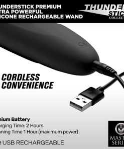 The world-famous Thunderstick just got better! This ultra-powered massage wand is now rechargeable, with a sleek silicone exterior that will feel silky-smooth against your skin. Get a comfortable grip on the ergonomically contoured handle, designed to minimize reverberation in your hand and arm. Meanwhile, you will be able to play with 4 intense speeds and 7 pulsating patterns of vibration from the round head. You can even take the all-new, waterproof Thunderstick into the shower or bath for steamy and relaxing pleasure. You deserve the best, and this super-charged power wand delivers! The premium silicone material is non-porous and phthalate-free. Preserve this material by avoiding use with silicone lubricants and cleaning after use with a mild soap or toy cleaner.