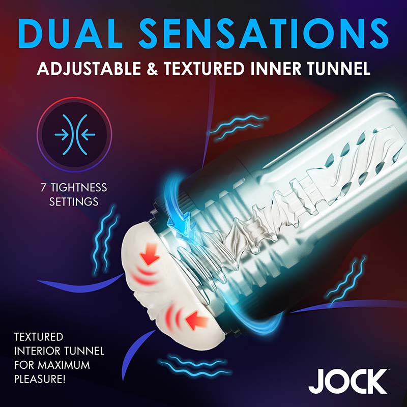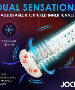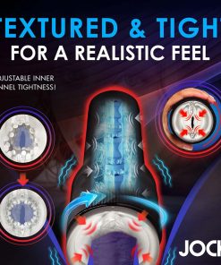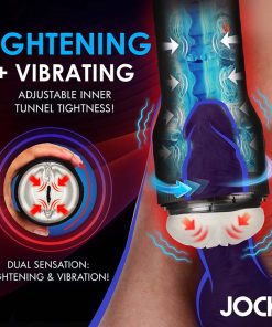 Upgrade your pleasure game with our revolutionary personal massager. This tightening and vibrating masturbator will have you aching for more! Customization is at your fingertips, with 7 levels of adjustable tightness that you can control by rotating the ring on the case for a tailored experience. Succumb to powerful vibrations, choose between 3-speed settings and 7 vibration patterns. The intricately textured tunnel heightens every stroke with its ridged and grooved interior. Keep a firm grip on the case with the thoughtfully designed non-slip case, built for comfort and precision. Recharge easily via USB and enjoy peace of mind with its splashproof IPX5 rating, making this the perfect companion for intimate moments anytime, anywhere.