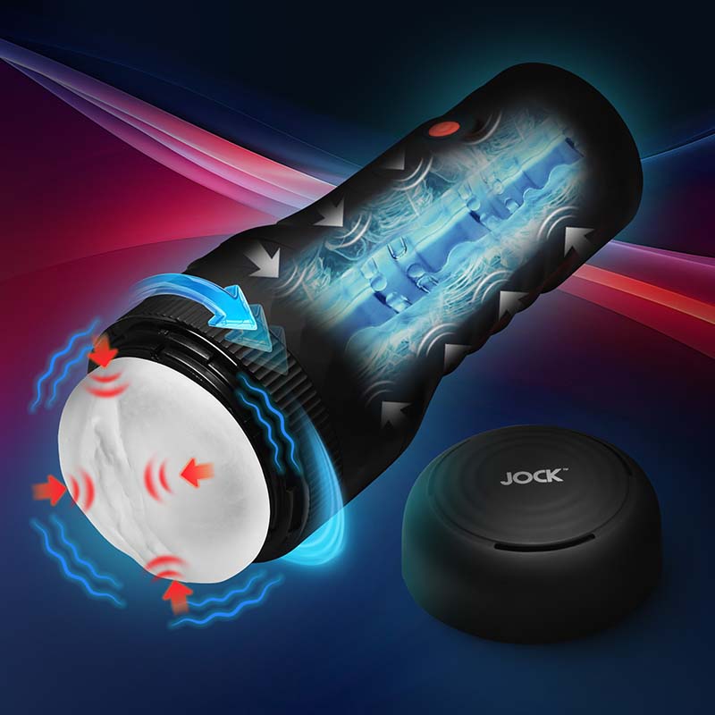As you push your head into the soft, stretchy rubber vulva in your hand, you feel the massaging caress of the tunnel’s grooves. The buzzing vibrations wake up your senses, pulsing and buzzing so much you feel it in your balls. As you push it in further you feel the squeeze around your shaft. You can handle it tighter, so you turn the ring on the case and feel the pressure increase! You pull out and feel the intensity grow. Every slow and steady stroke makes you feel the intensity even more, growing in pressure and sensitivity until you can’t help but let it all go!
