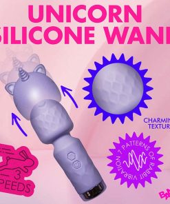 Introducing our enchanting iridescent lavender wand, a true joy for the senses! This wand features a delightful removable unicorn sleeve with an expressive smile, adding an extra touch of fun. Tailor your experience with 3 speed settings and 7 unique vibration patterns, giving you different feelings whether you opt for the unicorn sleeve or the gently textured head. The flexible neck helps you reach any spot effortlessly, and its silky-smooth silicone surface is body-safe and gentle on your skin. Perfectly sized for travel, this wand is also rechargeable and splashproof (IPX5) for convenient use wherever you go.
