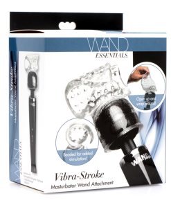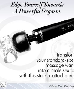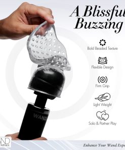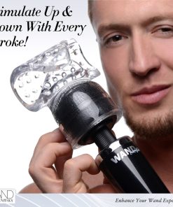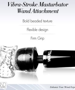 Transform your standard-sized massage wand into a male sex toy with this stroker attachment! Just open it up and wrap it around that penis for a thrumming massage during masturbation or partner play. The bold, beaded texture will stimulate up and down the shaft with every stroke, while the powerful motor of the wand treats you to blissful buzzing. The flexible design of this unique accessory allows it to fit most with a light, teasing grip. Edge yourself towards a powerful orgasm or explore orgasm denial with a partner. This material is safe to use with silicone or water-based lubricants. Clean after use with mild soap or a toy cleaner.