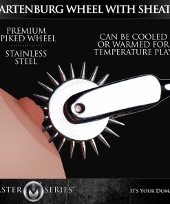Test the limits of sensitivity play with this classic Wartenburg wheel. Run this premium spiked wheel across the skin and other highly treasured areas for an exciting prickle of pleasure. Made of stainless steel and deviously designed with a row of evenly spaced sharp pins that turn smoothly as it rolls across the flesh, it is ideally designed for intense, exquisite pleasure. Take it to the next level with a little temperature play…the slick material can be warmed or cooled for an extra spike of sensation.