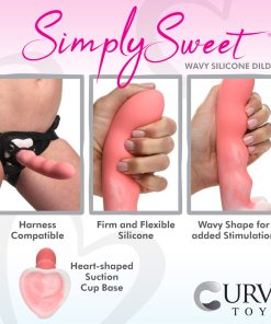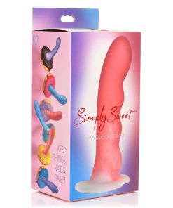 Ride the wave of pleasure with this Simply Sweet Wavy Silicone Dildo! The thick shaft has a slight curve to it and a wave pattern along the underbelly of the shaft. As you penetrate your most sensitive of holes, each wave acts as another penetrating bump to massage, stimulate and stretch you! The heart shaped base is wide enough for a strapon harness so you can enjoy partner play and pegging! Or use the suction cup base and ride it hands-free for solo, self-love sessions! Made out of premium silicone, it’s super soft and silky with a firm yet flexible core that allows you to get every angle and curve while still feeling the full, firm pressure of the dildo. Completely phthalate-free and body-safe, use it only with water-based lubricants for best results.