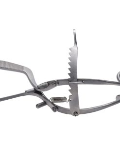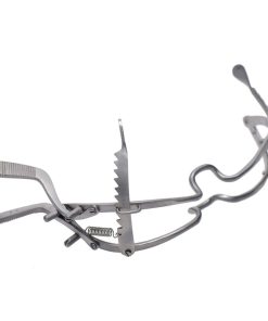 This medical device is used by dentists and oral surgeons to keep mouths open during examinations and surgeries. Made of high quality stainless steel with a matt finish, it is designed to adjust open and stay open until the catch is engaged at the side.